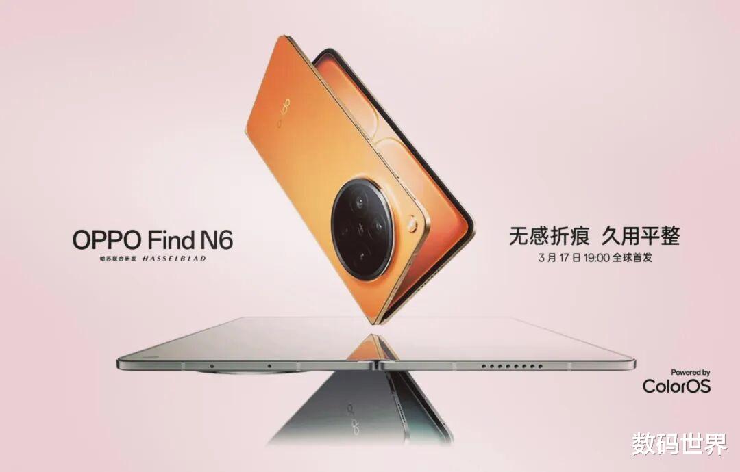 预热了1个多月的OPPO Find N6折叠屏旗舰终于官宣了,将于3月17日全球首发,该折叠屏的核心亮点:无感折痕、内置AI手写笔、哈苏2亿四摄等,同时也是全球首款2亿像素主摄的大折叠屏。