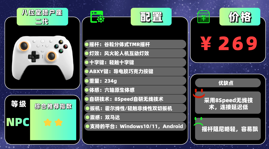 推荐产品⑨:八 位堂猎 户座二代游戏手柄