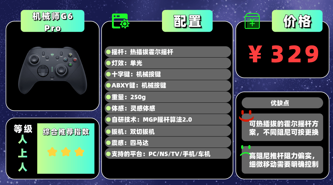 推荐产品④:机 械师G 6 Pro游戏手柄