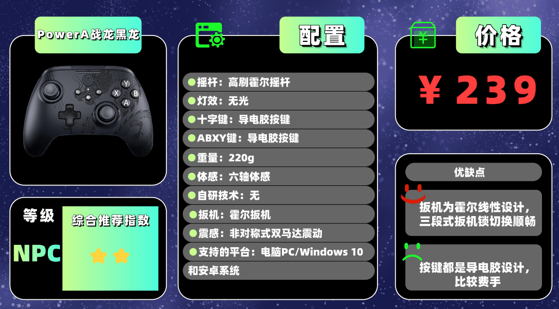 推荐产品⑦:P owerA战 龙黑龙游戏手柄