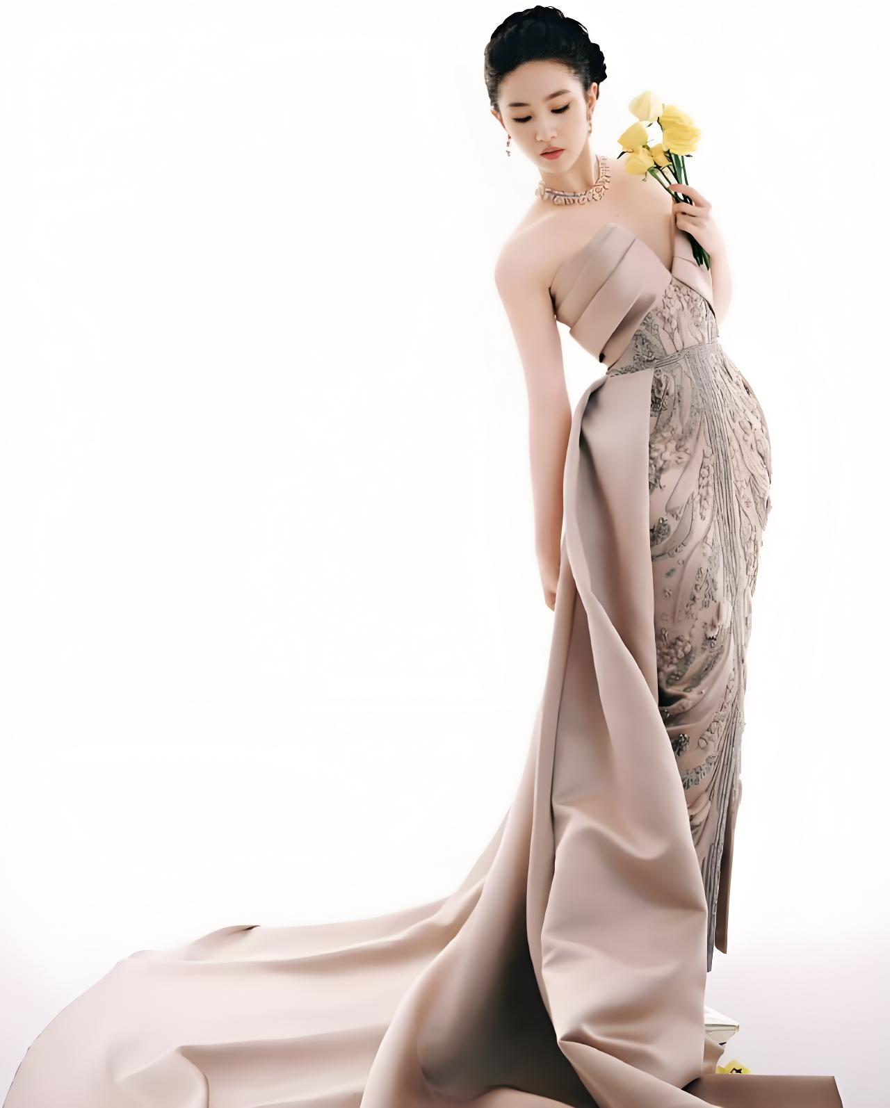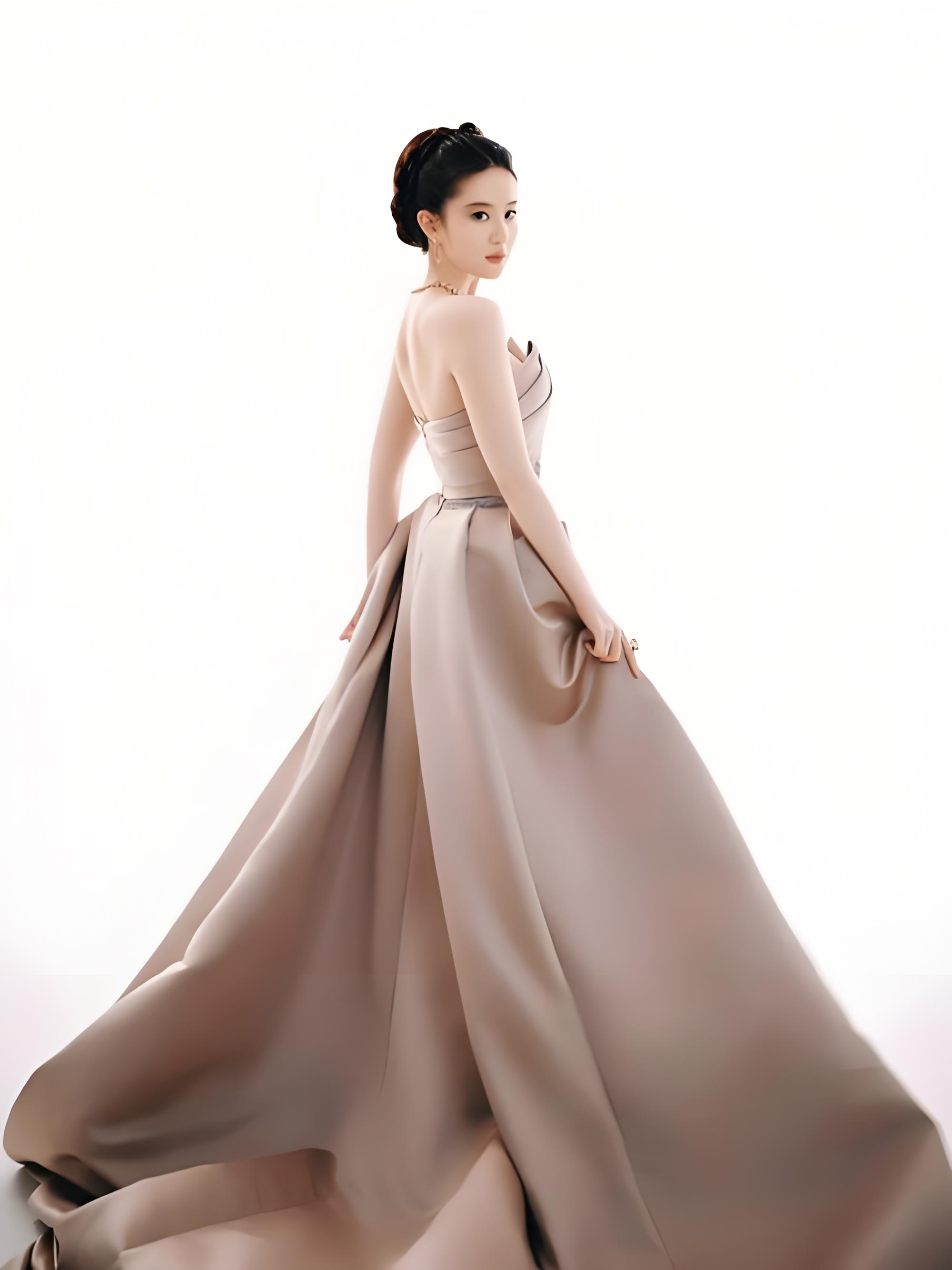 首先,刘诗诗,她属于曲线型、中量感、优雅型风格。