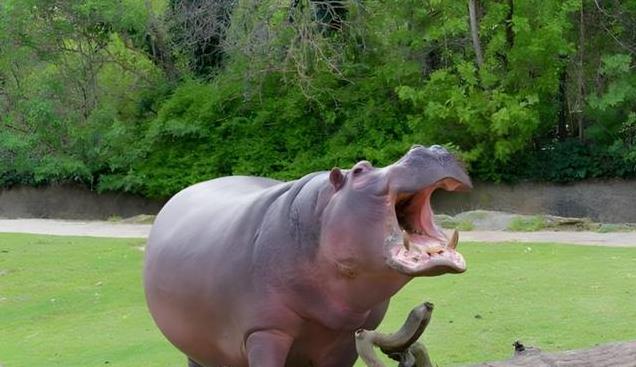 它们用来进食和进攻防御嘴巴却很大,能张开呈90°。河马也是陆地上嘴巴最大的动物。