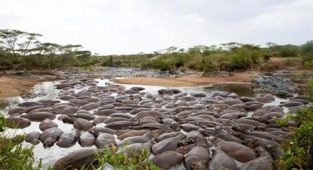 这4000多头河马就成群结队地挤在这些小湖泊中,它们每天要在马拉河中制造120吨粪便,一年要在马拉河里拉4.3万吨左右的粪便。