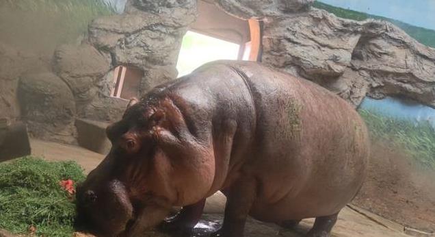 所以一头成年河马每天可以消耗大约36至68公斤的草料,这还是在草料不管饱的情况下,否则这个这个数字会更大,因为它们几乎随时都在吃东西。