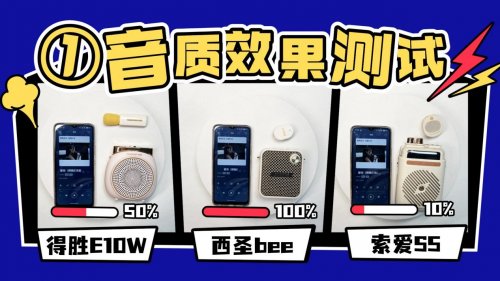 维度1:音质效果音质效果是小蜜蜂扩音器的核心体验之一,直接决定课堂、活动或户外使用时的听感表现。本次测试统一使用同一首音乐,通过蓝牙连接播放,重点对比三款扩音器在人声清晰度、低频表现、高频延展以及大音量下的失真控制,以判断它们在实际使用中的音质差异。