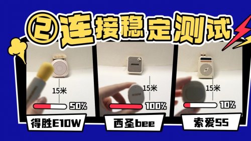 连接稳定性是衡量蓝牙小蜜蜂扩音器体验的重要指标之一。连接不稳不仅会影响声音的连续输出,还可能在课堂、活动或直播中造成尴尬中断。为客观评估三款产品的连接表现,本次测试选择在室内环境内测试说话距离,判断原近,声音会不会断断续续的情况。