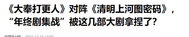 1.原文刊登于钛媒体app2024-12-16《《大奉打更人》对阵《清明上河图密码》, “年终剧集战”被这几部大剧拿捏了?》的报道