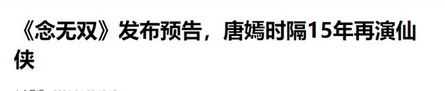 2.大众日报2024-04-23《《念无双》发布预告,唐嫣时隔15年再演仙侠》的报道