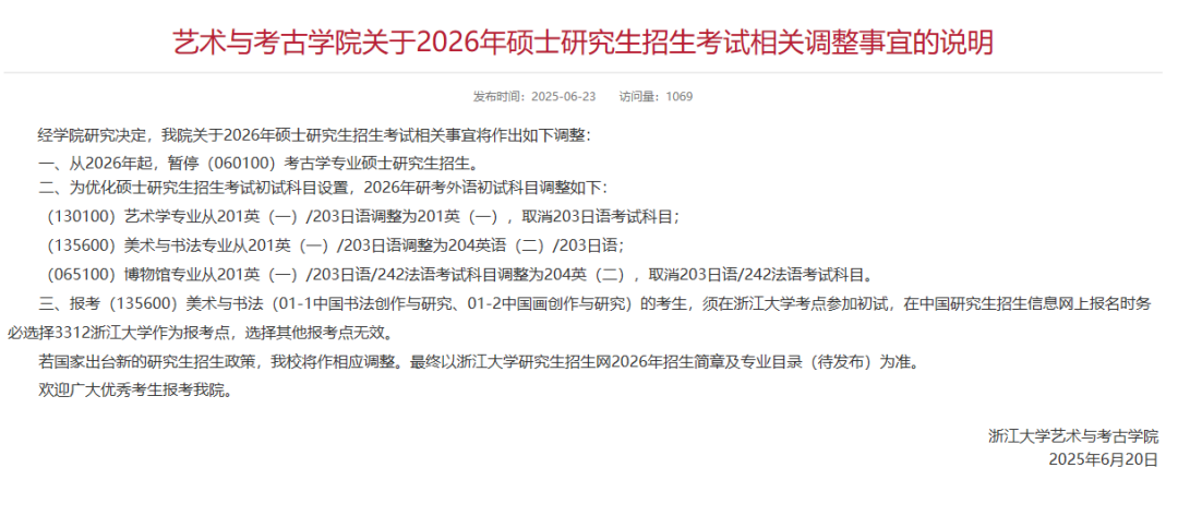 艺术与考古学院,26年起暂停招生考古学专业硕士研究生。