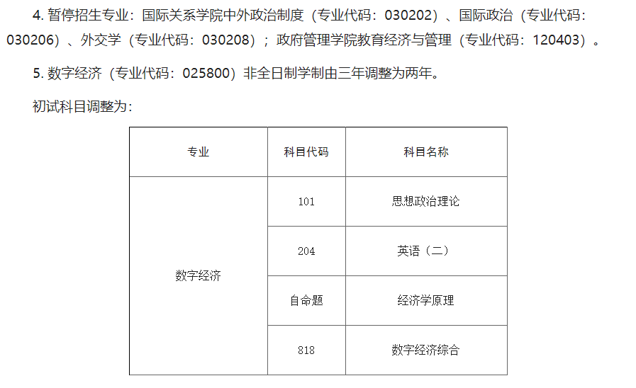 国际关系学院中政治制度(专业代码:030202)、国际政治(专业代码:030206)、外交学(专业代码:030208);政治管理学院教育经济与管理(专业代码:120403)暂停招生。