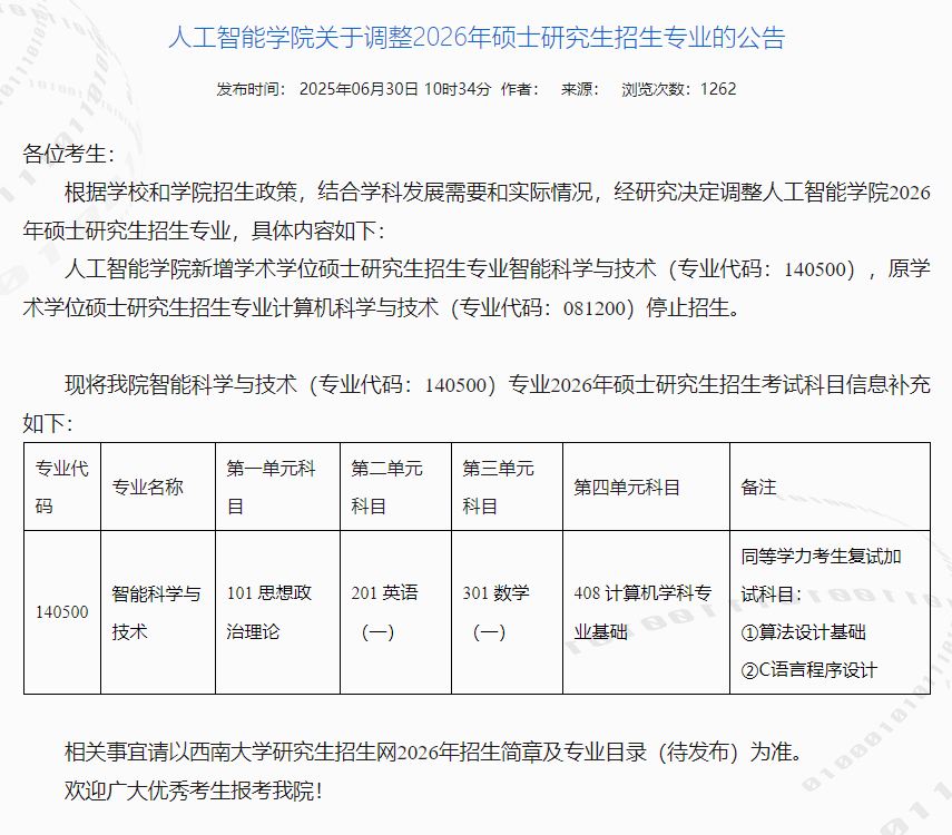 根据人才培养规模与结构调整规划,26年起不再招收学术学位研究生(专项除外)。