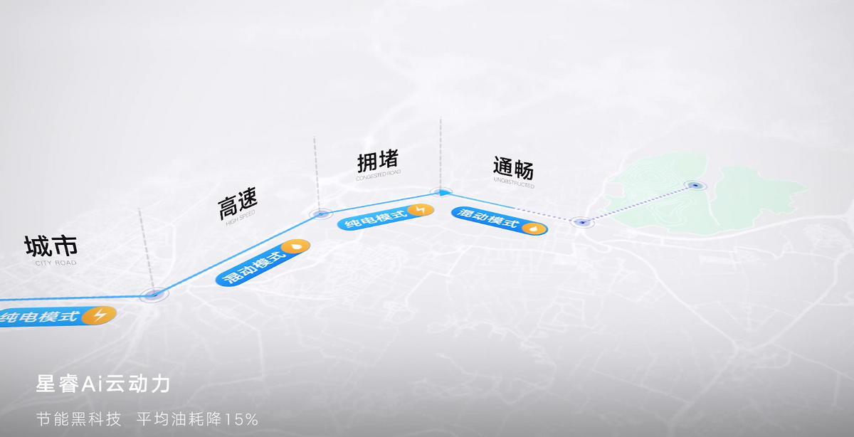 超越硬件层面的,是智慧的能量管理大脑——星睿AI云动力系统。它如同一位随车能源管家,通过AI大模型实时学习驾驶习惯,并融合导航、环境温度、坡度等海量信息,对油电分配、能量回收强度、热管理策略进行毫秒级优化。这种从“规则控制”到“自主感知决策”的跃迁,据称可提升整体能效15%,让低油耗不再依赖苛刻的驾驶方式。