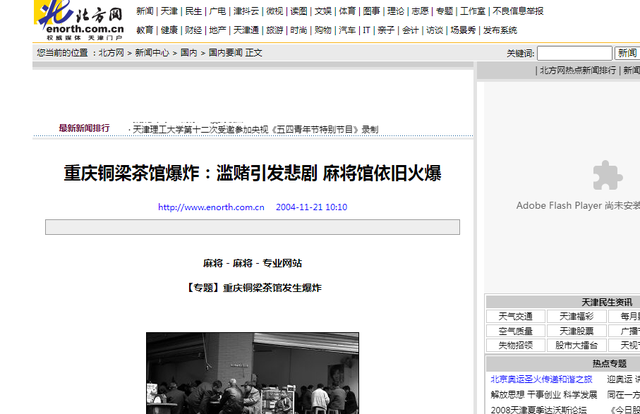 北方网-重庆铜梁茶馆爆炸:滥赌引发悲剧 麻将馆依旧火爆(2004-11-21)
