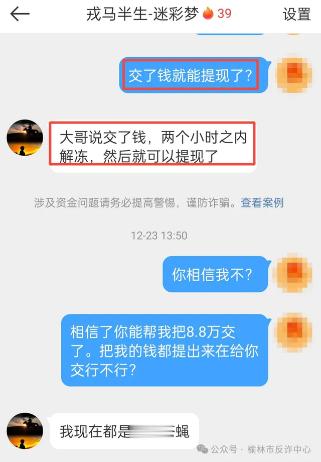 编造理由再骗钱:在获取受害者足够信任后,以账户冻结为由,诱骗受害者转账解冻。先以相对大额的 8.8 万元设局,当受害者转账后,又要求继续转账,不断榨取受害者钱财。