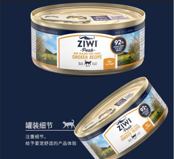 巅峰同样是来自新西兰的品牌,原料里加入了新西兰特色的青口贝,每种口味还加了鹰嘴豆。口味一共有牛肉、鸡肉、羊肉、鹿肉、马鲛鱼、马鲛鱼羊肉这些,0胶质0诱食剂。价格不便宜,和K9一样,定位是高端进口罐,活动期间购买可能也要二十来块一罐,预算充足的话可以考虑一下。