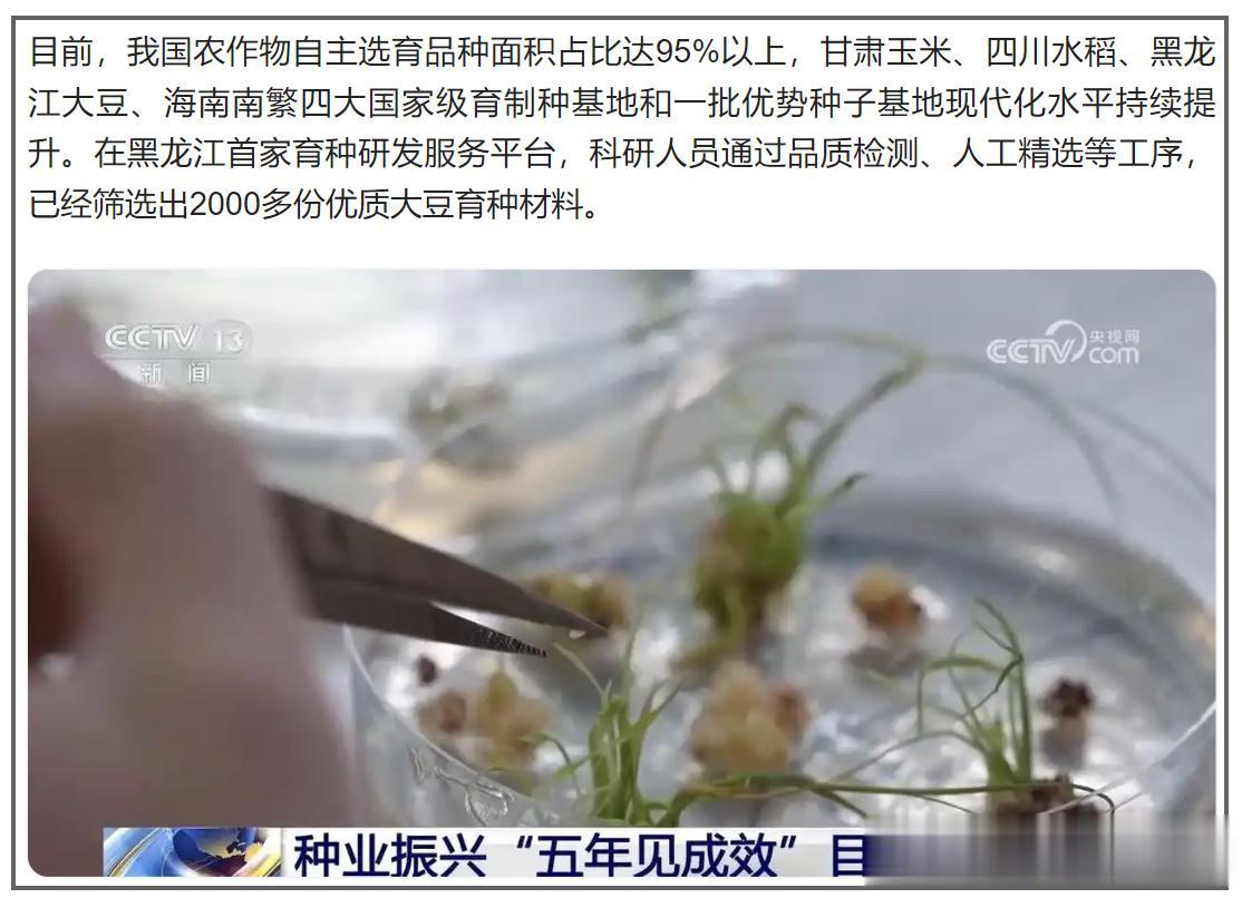 根据央视报道,“十四五”这段时间里,咱们自己选育的农作物品种,种下去的面积已经超过95%了。甘肃的玉米、四川的水稻、黑龙江的大豆,还有海南的南繁基地,这几个国家级育种制种基地,加上其他地方的一些优势种子基地,水平都在不断提高。
