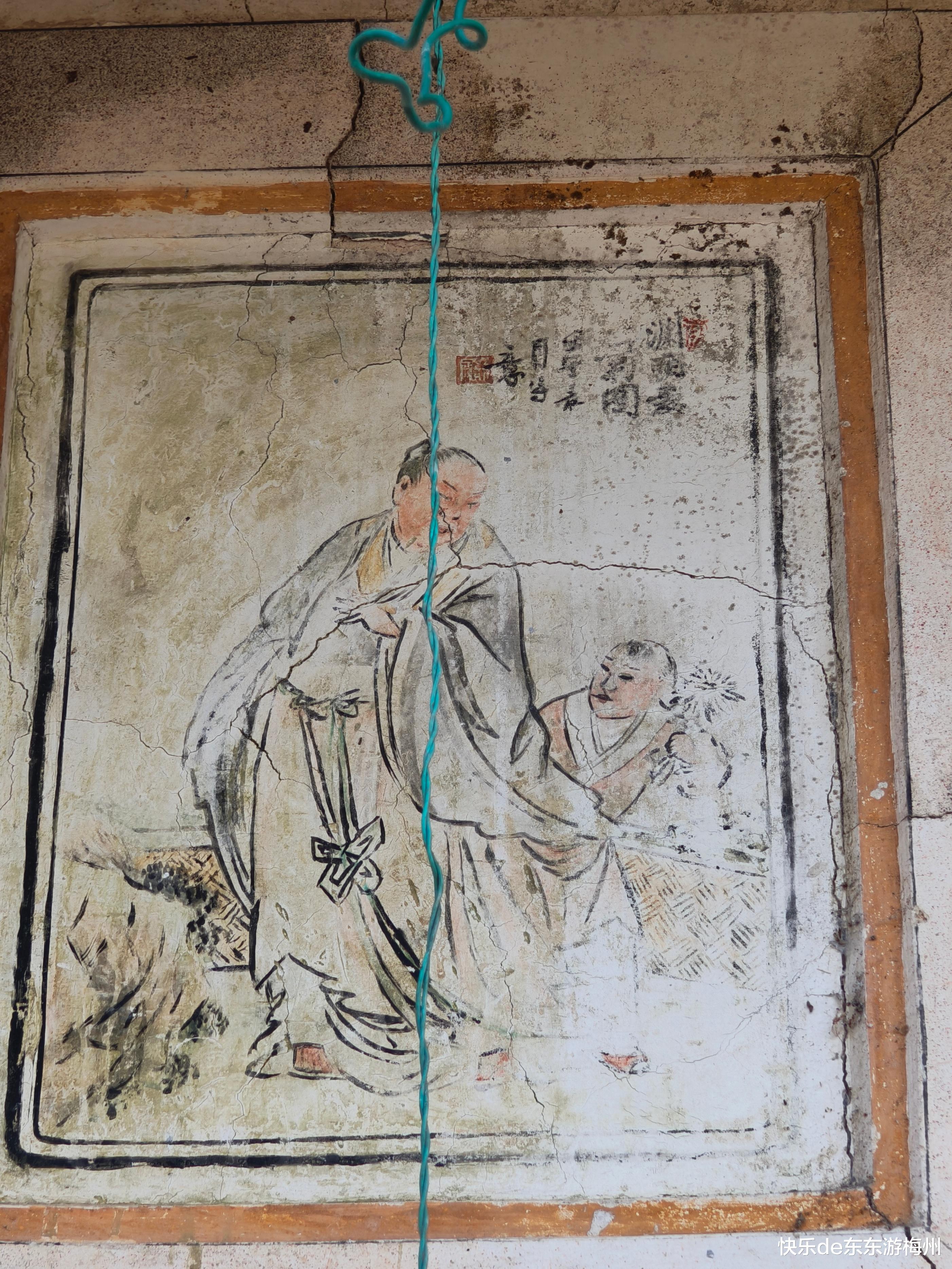 正大门的对联上方有两幅壁画,一幅画的是《孟浩然踏雪寻梅》的故事,另一幅画的是《陶渊明爱菊图》,孟浩然和陶渊明都是隐士,他们的故事传承千年,历久不衰……