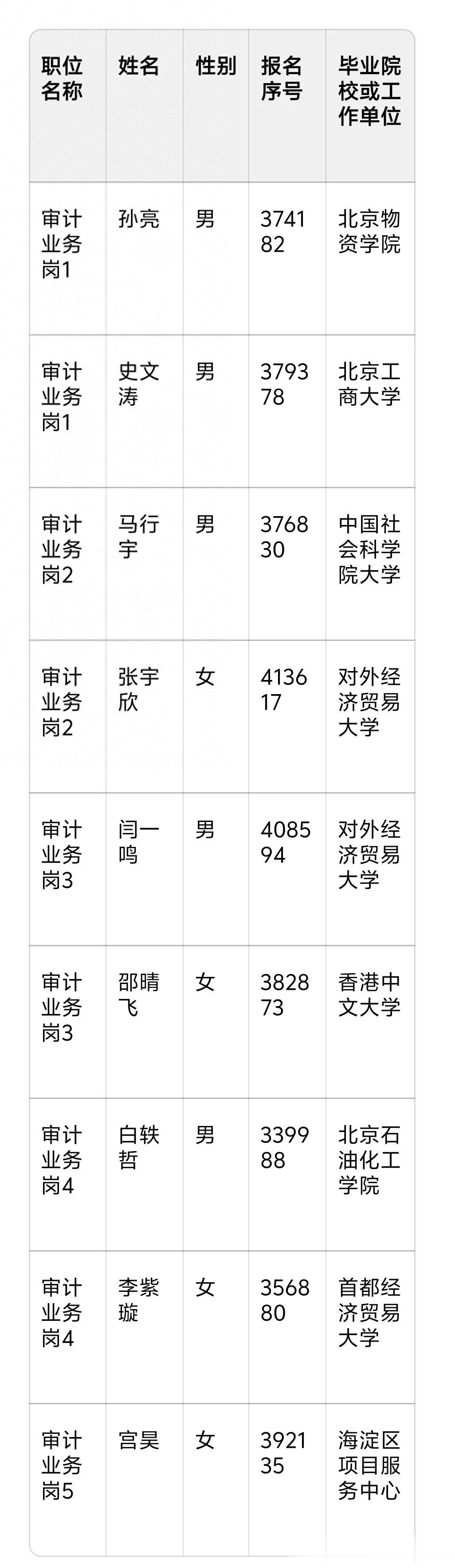 近日刷到一份2026年北京市审计局的拟录用名单,看完还挺有感触的。