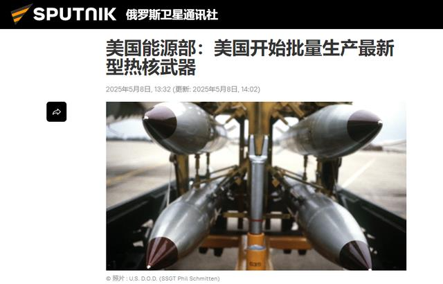 信源:俄罗斯卫星通讯社 2025年5月8日 关于“美国能源部:美国开始批量生产最新型热核武器”的报道