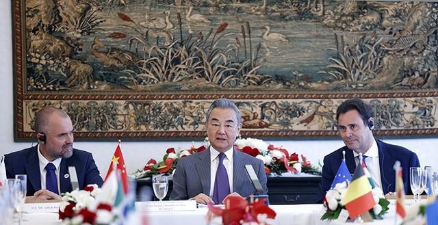 6月25日,北约峰会最后一天,中国外交部长王毅在北京集体会见欧盟及27个成员国驻华使节。