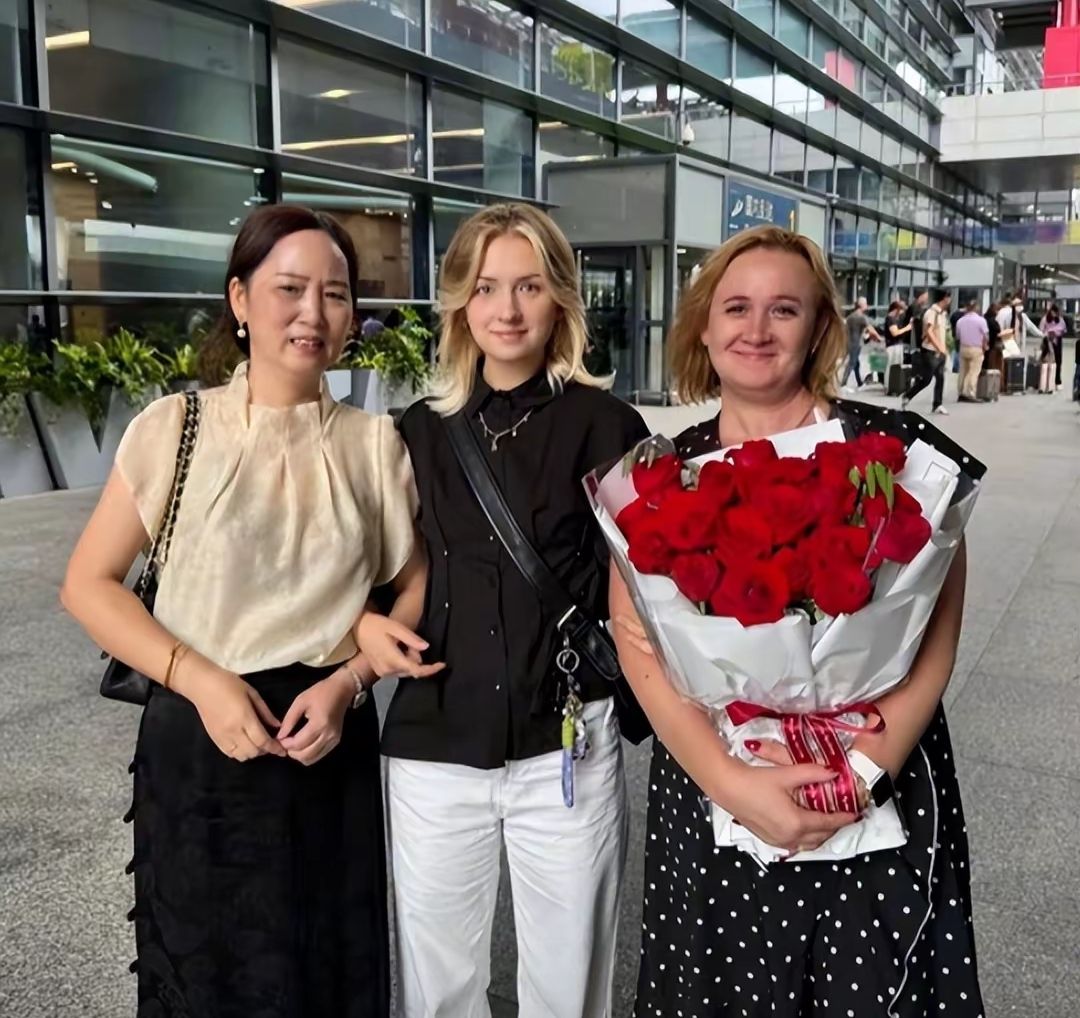 (瑞娅和婆家人在机场接到妈妈)