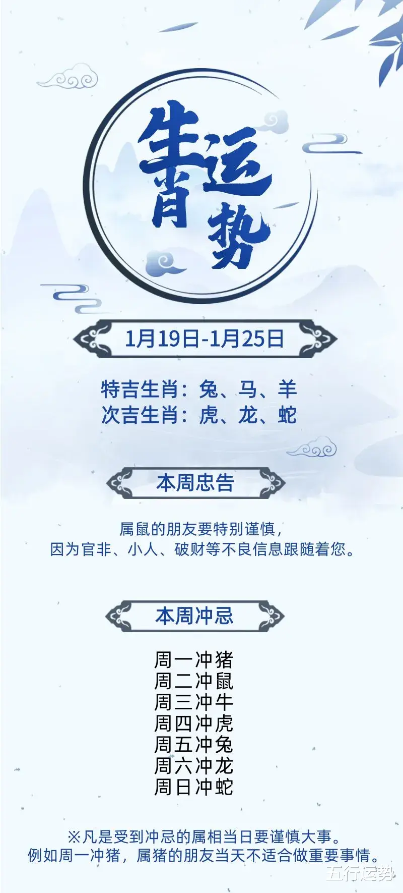 整体:大起大落的一周。周二“三合”,周五“犯害”。财运:本周财运不佳,有破财的风险,无论做什么都要格外谨慎,切勿参与赌博等高风险活动。爱情:周一“红鸾”桃花入命,有伴侣者感情运势下降,容易吵架;周日“天喜”桃花入命,单身者条件出众,吸引众多异性靠近,不妨抓住机会。事业:本周工作压力增大,任务繁重,需要一丝不苟,避免因粗心大意而出错。建议合理安排工作任务,保持专注。健康:超负荷工作会让身体吃不消,建议注意劳逸结合,适当放松,保持良好的作息习惯。建议:周五尽量避免重大决策或行动,重要事宜建议安排在周二,这一天运势较好,更利于事情的顺利推进。生肖猪