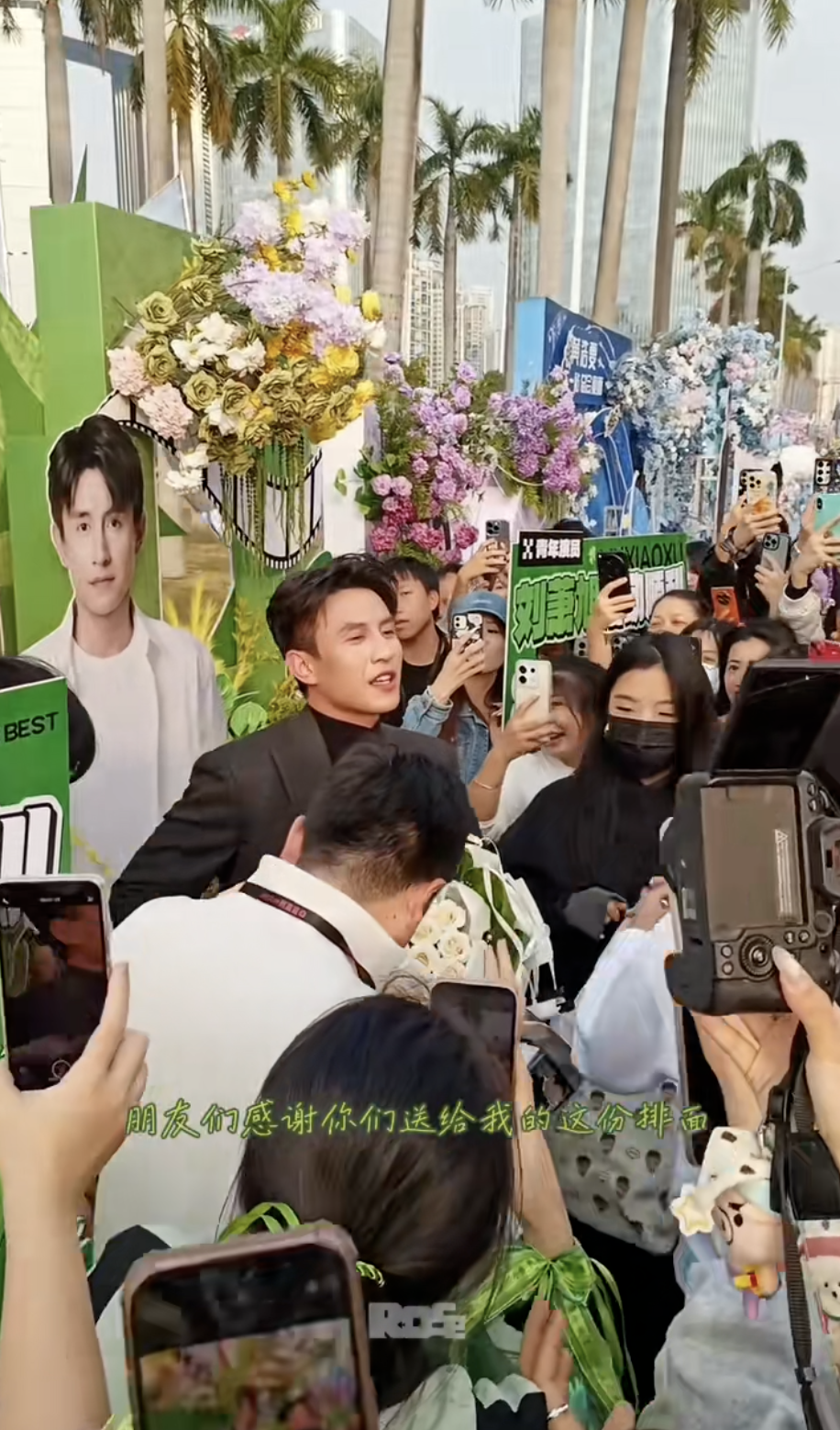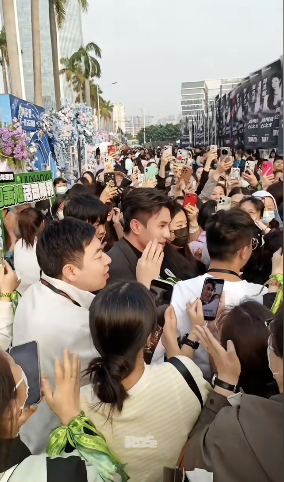 他一现身,粉丝便拿出手机一通狂拍,现场人头攒动,呼叫他名字的声音此起彼伏,影视剧里顶流受追捧的场面顿时具象化了。