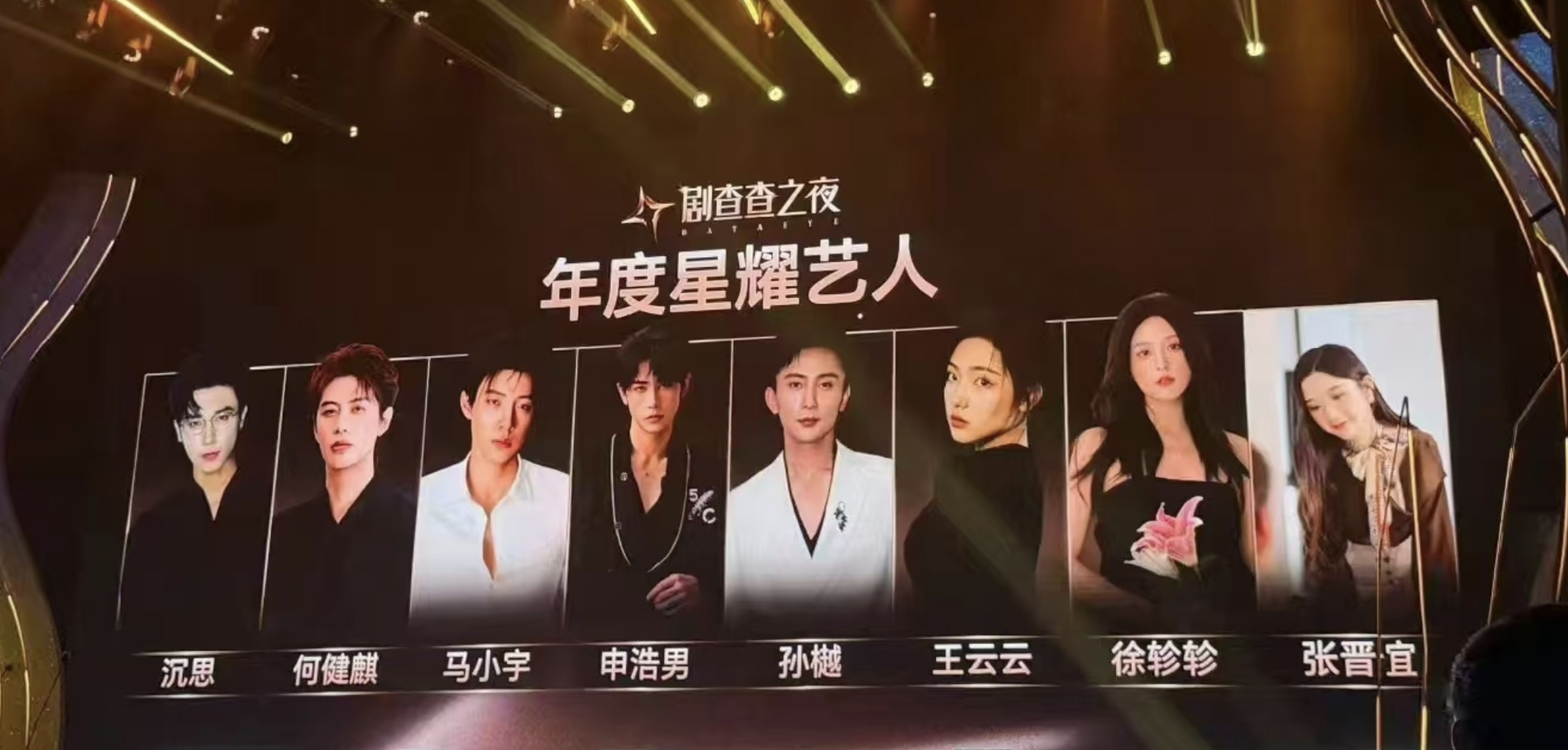 “年度星耀艺人”是沉思、何健麒、马小宇、申浩男、孙樾、王云云、徐轸轸、张晋宜。