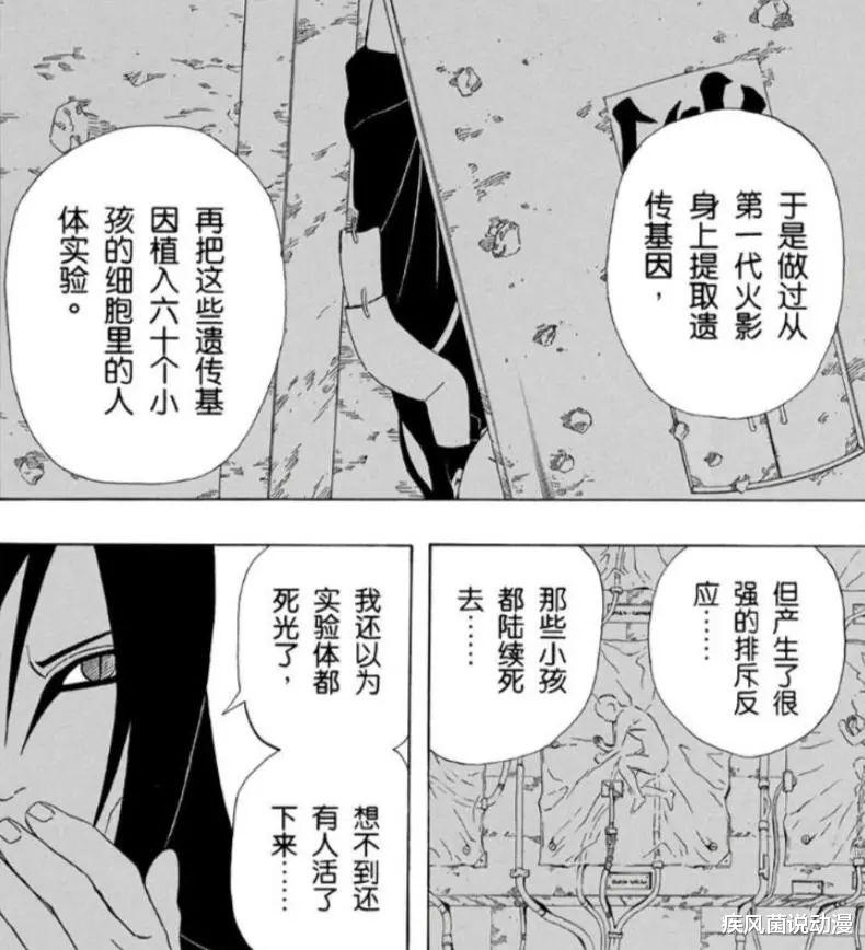 有关于这个实验还并不是大蛇丸被发现之后就停止了,就在疾风传中也交代过,大蛇丸还在和团藏进行接触,进行千手柱间细胞的研究活动,并且得出了一些新结论。