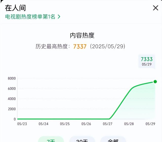 人家有实打实的活儿撑着呢!刚好播出的新剧《在人间》,才上线三集,热度已经猛冲突破7300点。