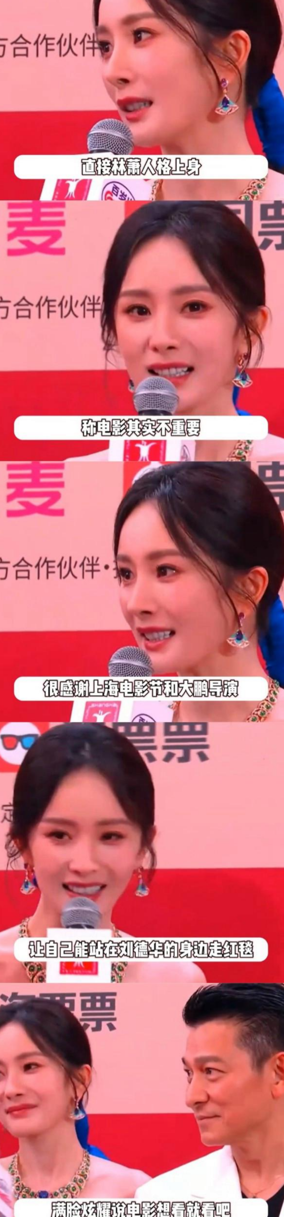 杨幂在现场那可是相当兴奋,直接说自己特别感谢大鹏和上影节,让她有机会挽着刘德华走红毯。她还开玩笑说电影其实不重要,你们想看就看吧!这话一出来,全场都乐了,这杨幂也太敢说了,简直就是“放飞自我”啊。