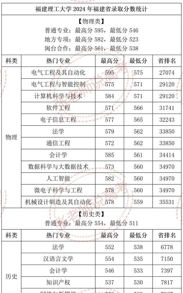 当然,学校的变化不仅体现在名字和学科上。从2024年的录取数据来看,福建理工大学的“吸引力”正在迅速提升。在福建省内,普通类物理组的录取最高分高达595分,这可不是一般高校能轻易达到的成绩。而历史组的最高分更是达到了554分,最低分也有511分。也就是说,不论是理科还是文科,福建理工大学都颇具竞争力。