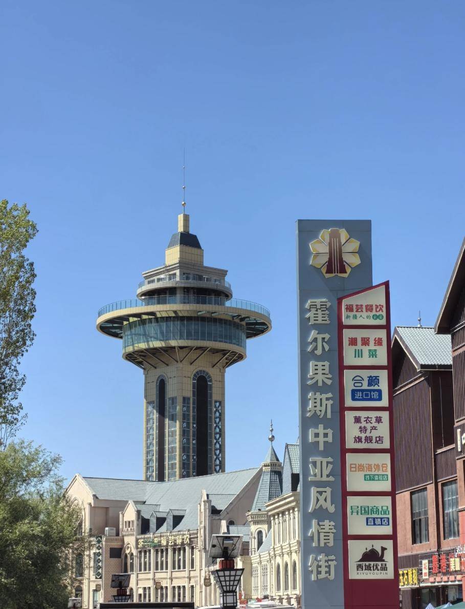 站在108米高的西域明珠观光塔上俯瞰,一侧是哈萨克斯坦广袤的原野,另一侧是霍尔果斯万亩桃园盛开的粉色花海,这座边境小城的独特魅力在眼前缓缓展开。霍尔果斯,在蒙古语中意为“驼队经过的地方”,在哈萨克语中则被赋予“积累财富的地方”的美好寓意。这里不仅是丝绸之路上的历史重镇,更是美食、美景与多元文化的交汇点。从隋唐时期的驿站到今天的现代化口岸城市,霍尔果斯正在以全新姿态迎接世界各地的游客。
