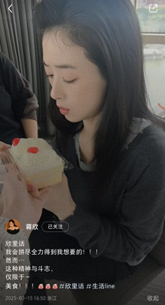 3月15日,演员蒋欣在个人社交平台分享了一段生活vlog。此次出镜,蒋欣使出了800个心眼子,就为吃几口美味可口的蛋糕,眼馋模样真是可爱极了。