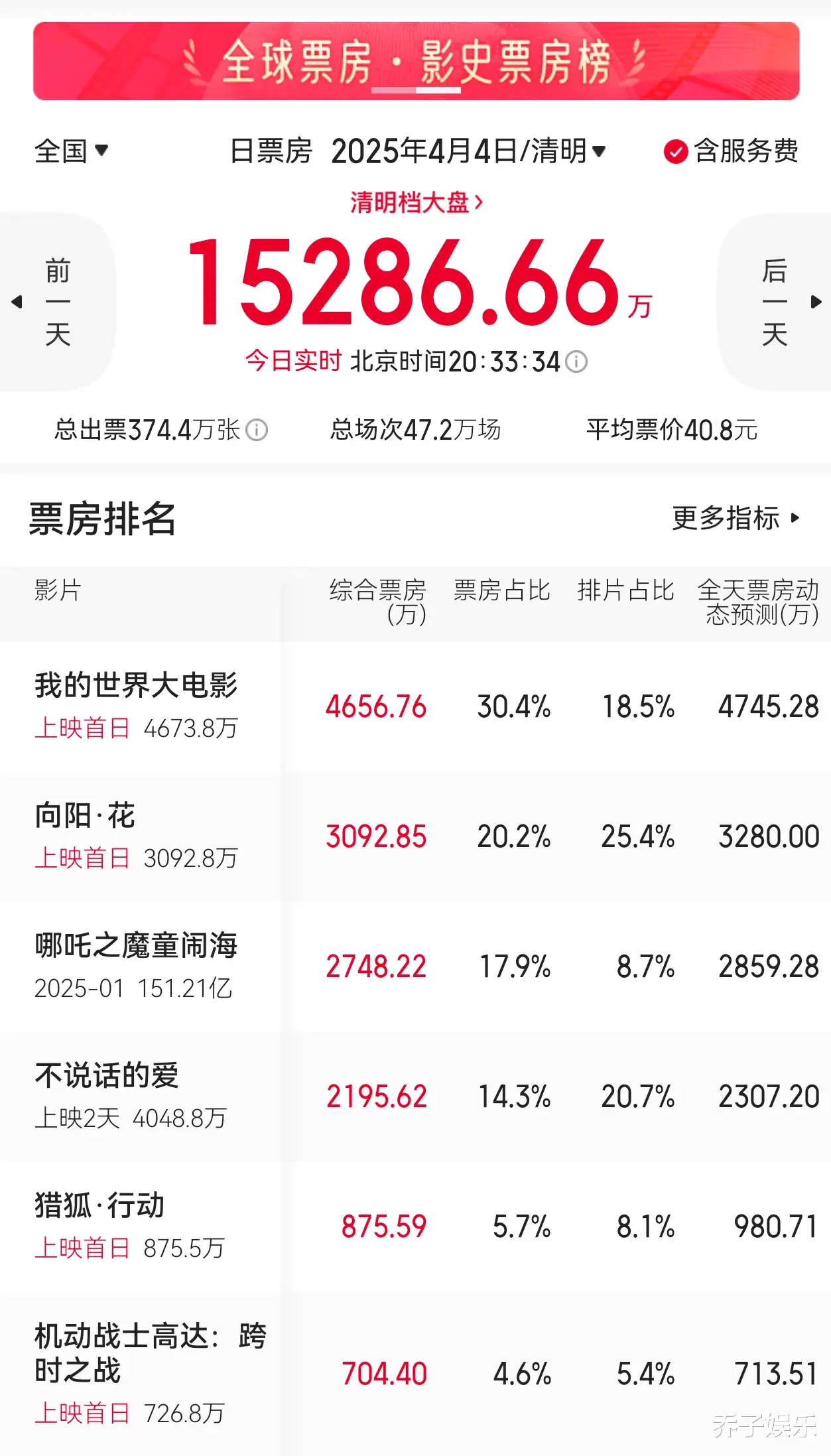 然而,在这场混战中,一部好莱坞的《我的世界大电影》却以一种“闷声发大财”的姿态悄然崭露头角,强势拿下4月4日的单日票房冠军,这样的结果真是令人咂舌。