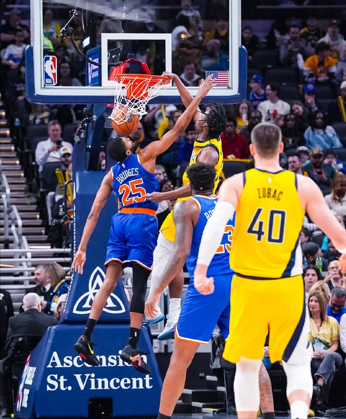 布伦森今天发挥不错,全场出战36分钟,投篮25中11,三分3中0,罚球8中7,拿到29分5篮板9助攻2抢断的全面数据,正负值+12。阿奴诺比状态火热,出场34分钟,16投8中,三分球4中2,罚球9中7,得到25分8篮板5助攻。