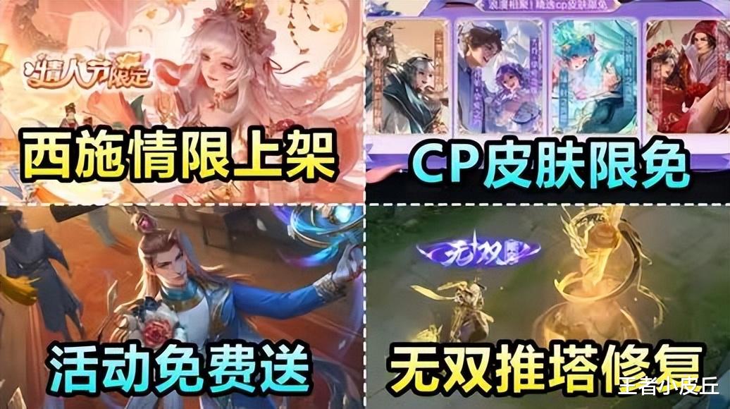 以往情人节期间还会有情侣限定皮肤进行返场,但是这次却没有,不过有多款情侣限定皮肤可以限时体验,包括云缨和赵怀真的鹤归松栖、大乔的挚爱花嫁、孙策的挚爱之约、瑶和云中君的时之祈愿、露娜的一生所爱、孙悟空的大圣娶亲等。