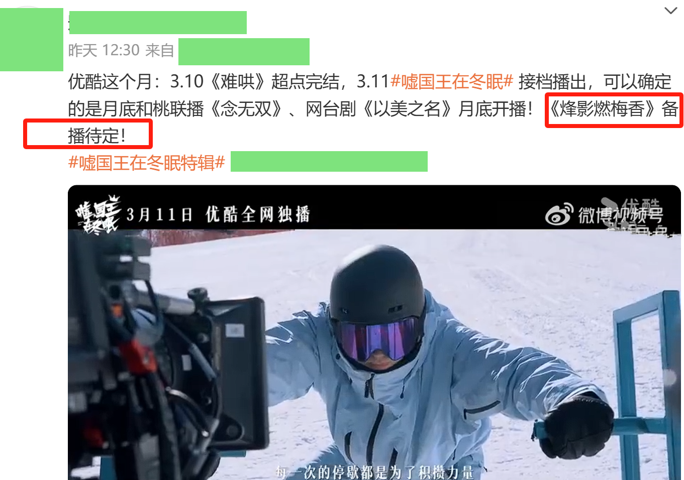 我看《烽影燃梅香》有这个机会,网传这部剧将于3月在酷开播。