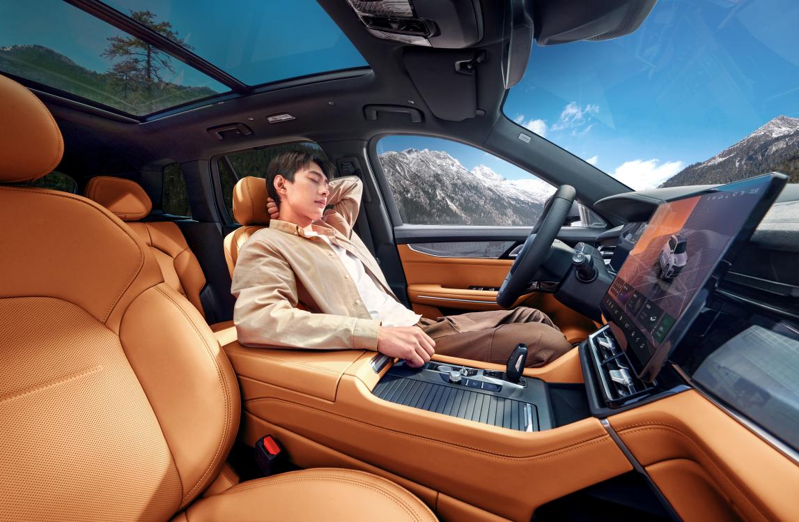 基于SPA架构技术底蕴,领克09EM-P大五座车身尺寸达到5042mm×1977mm×1780mm,轴距为2984mm,为同级车型中空间表现最为突出的产品。二排横向间距达到1366mm,位列同级车型最宽水平,配合540mm超深座垫设计,为三位成年人同时乘坐提供充裕的肩部与腿部空间。座椅系统采用NAPPA真皮材质包覆,前排座椅集成8点式按摩模块,结合三档可调的通风与加热功能,显著提升长途驾驶的舒适性。后备箱容积最大可拓展至1522L装载容积,纵深延伸至2075mm,轻松放置冲浪板、折叠自行车等大型户外装备。座椅支持一键全平放倒功能,形成长度达2米的纯平空间,快速构建移动休憩场景,满足露营、长途自驾等多元需求。
