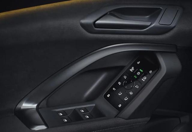 中控台下边还是留着一堆实体按钮,像启动车、挑驾驶模式、还有管多媒体的那些常用功能都有。新方向盘上装了触控键,啥功能都包括了,挺全的。新的电子变速箱按钮看起来更小巧,地方也省了。主驾驶门边上的按钮区也挺有新意,现在都改成触屏的了,车灯、后视镜调节、座椅记忆这些功能都合一块儿了。