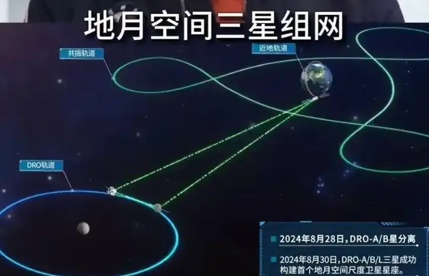 在2024年8月30日,DRO-A、DRO-B两颗卫星被拯救成功之后,就和此前已发射成功的DRO-L卫星,三颗卫星两两之间成功构建K频段微波星间测量通信链路,首次验证了地月空间尺度三星互联互通的组网通信,这标志着我国3点星座的建成,也实现了我国航天领域上的再一次突破。