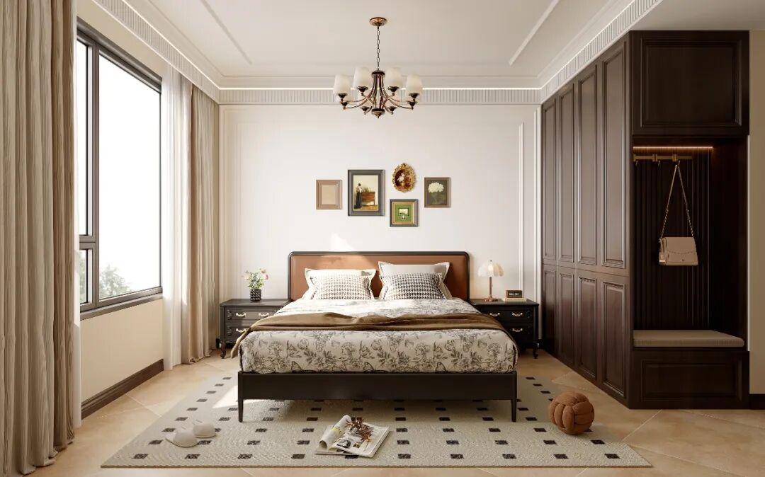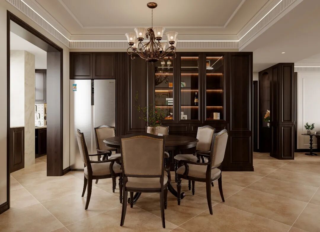 这套140㎡的复古宅邸,是时光与功能的协奏曲🤝。深棕木作沉淀岁月,绿植花艺注入呼吸感🌿,每处细节皆在回答:如何让经典不陈旧,让现代不冰冷?我以“可居住的博物馆”为念——拱形窗是取景框,护墙板是史书页,而业主的生活才是永恒主角✨。愿这方空间成为归巢的船,载满咖啡香、书页声与夜灯下的呢喃🌃。