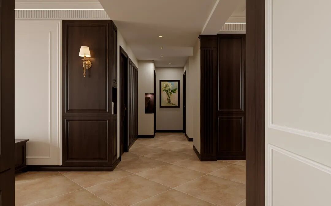 深棕/墨绿主调×米白浅砖,浓淡相宜如老电影滤镜🎞️,暖光吊灯晕染怀旧情愫。