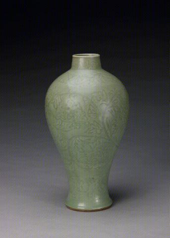 (明龙泉窑青釉刻划缠枝莲纹梅瓶 故宫博物馆藏)