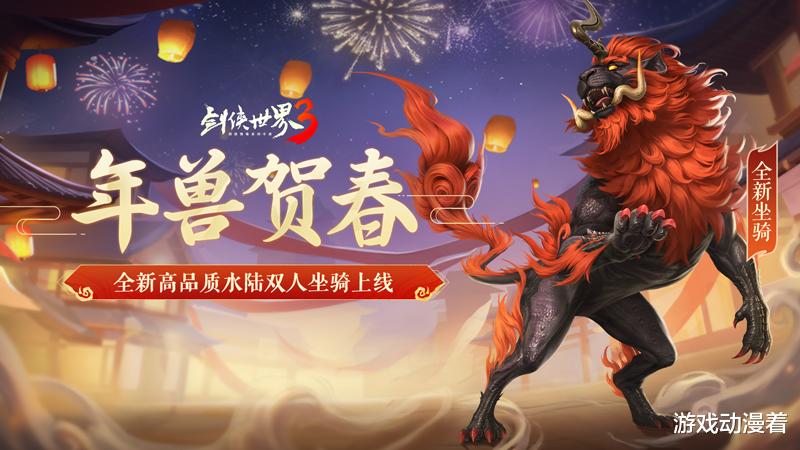 火舞新岁,策马迎春!当炽焰破晓,新春的鼓点已在《剑侠世界3》的江湖间回荡!专属新春大服隆重开启,豪礼连连,福利加码,与少侠共启热闹新章。除夕之夜,全新坐骑【年兽·祟】驭焰而来,踏岁成新!梅雪交映,新时装「贺新韶」、发型「衔春束」华丽登场,雪照芳华,共赴红梅初绽的浪漫;还有憨态可掬的温柔巨人,萌宠古牧【芬恩】暖心来袭,伴君同游江湖,共贺瑞年。火照长夜,岁启新章。新外观、新坐骑、新萌宠、新活动齐上阵,好一个热闹的江湖新春盛宴!