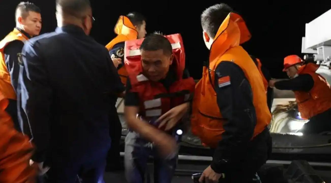 渔民们惊魂未定,因长时间浸泡海水、衣着单薄,部分人冻得瑟瑟发抖、体力不支。