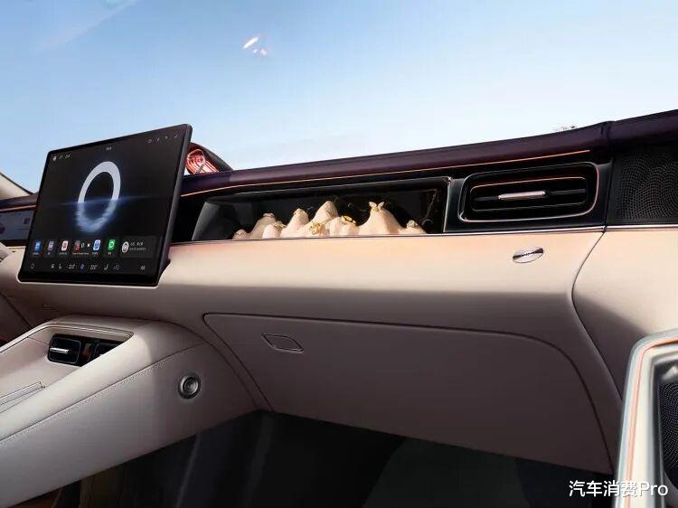 根据官方信息来看,新车首发随动四维屏,屏幕支持前后伸缩和左右旋转,可以自动转向、智能迎宾,呼叫小艺就能转向应答。副驾使用了创新储物空间设计,可放置用户喜爱的毛绒玩偶、手办等物件。