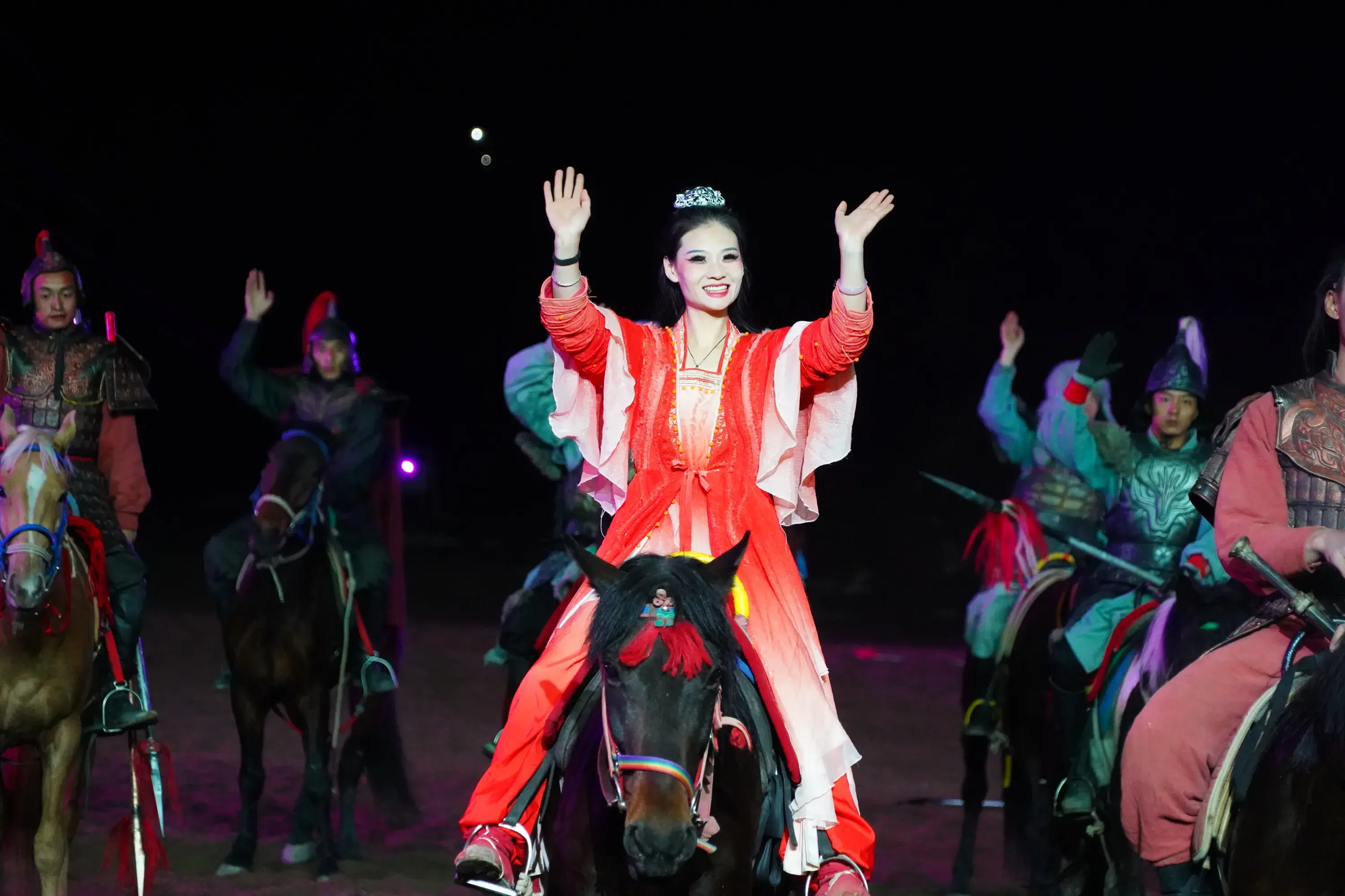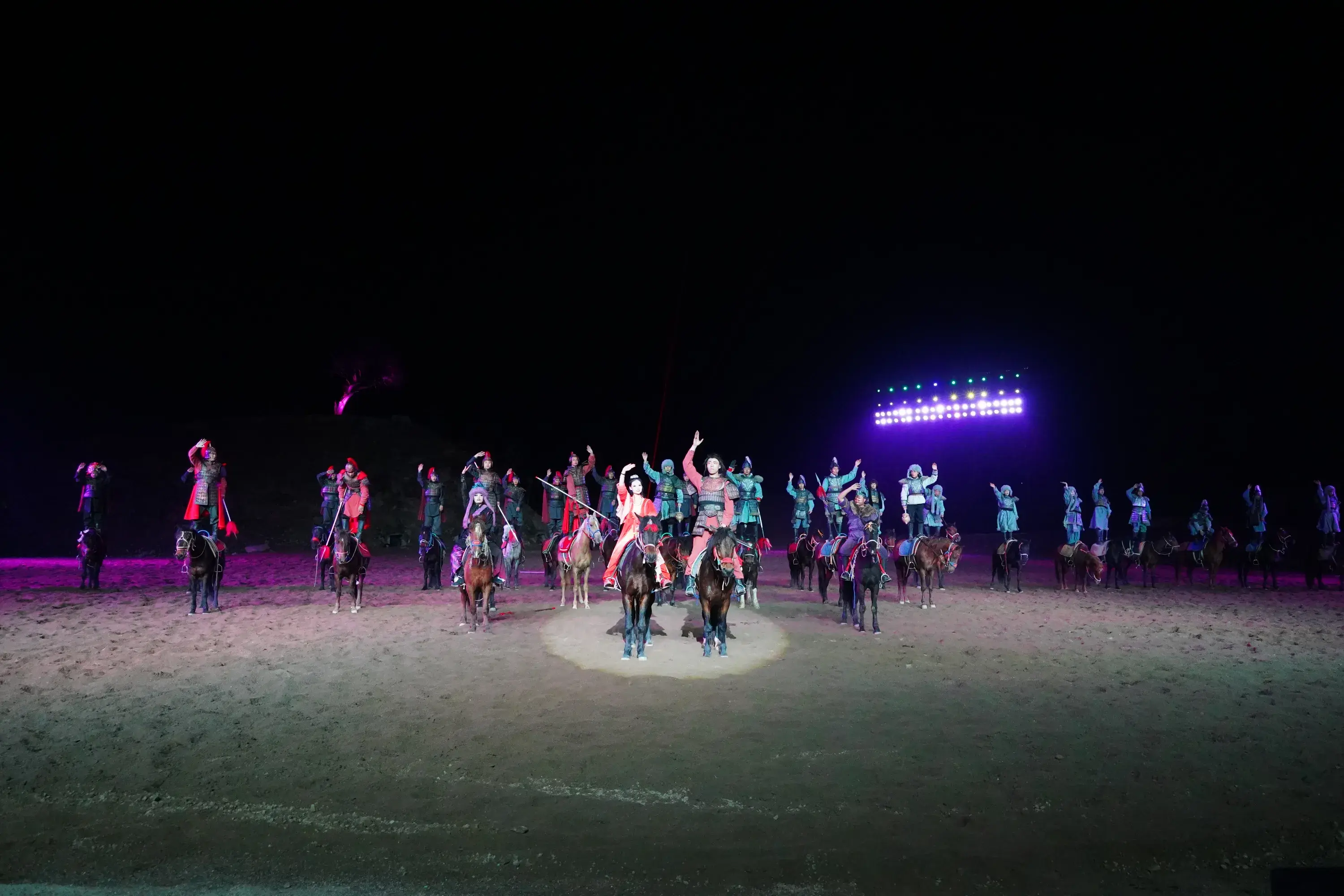 天色渐晚,实景剧《大秦关山》开演,史诗背景、缠绵爱情、精湛演绎、带您体验千年传奇神话!