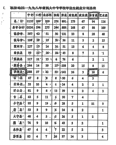 (1998年临汾地区中专毕业生就业计划,当事人提供)