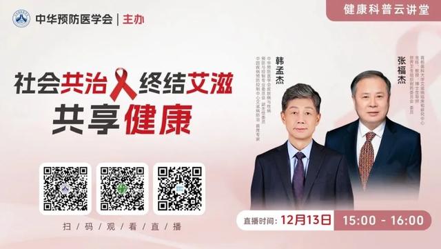 中华预防医学会健康科普云讲堂策划“社会共治,终结艾滋,共享健康”特别活动,邀请韩孟杰主任和张福杰主任两位权威专家做客直播间,为我们讲述艾滋病那些“神秘”的事,告诉我们如何做好预防和治疗。今日15:00让我们齐聚直播间,聆听专业讲解!